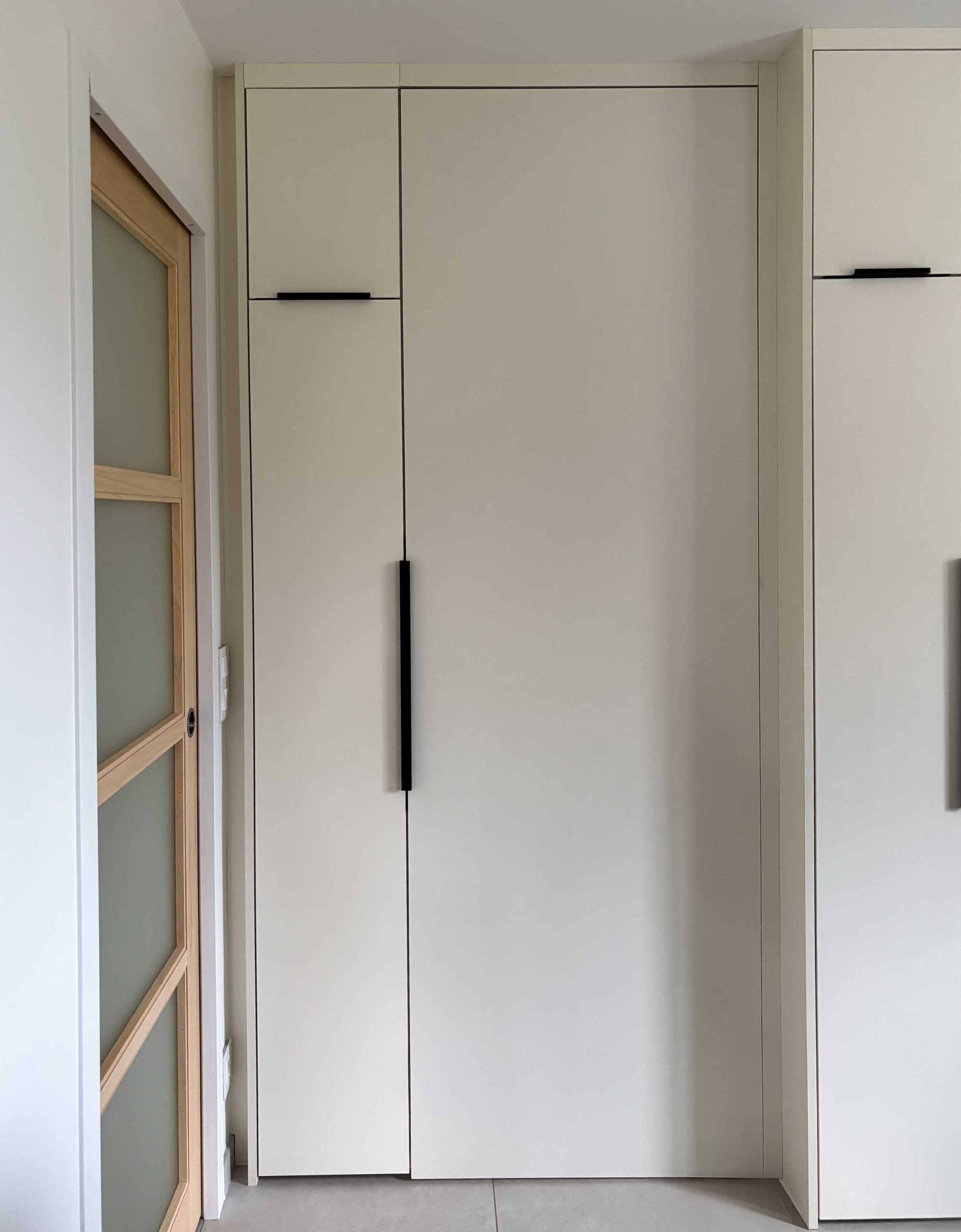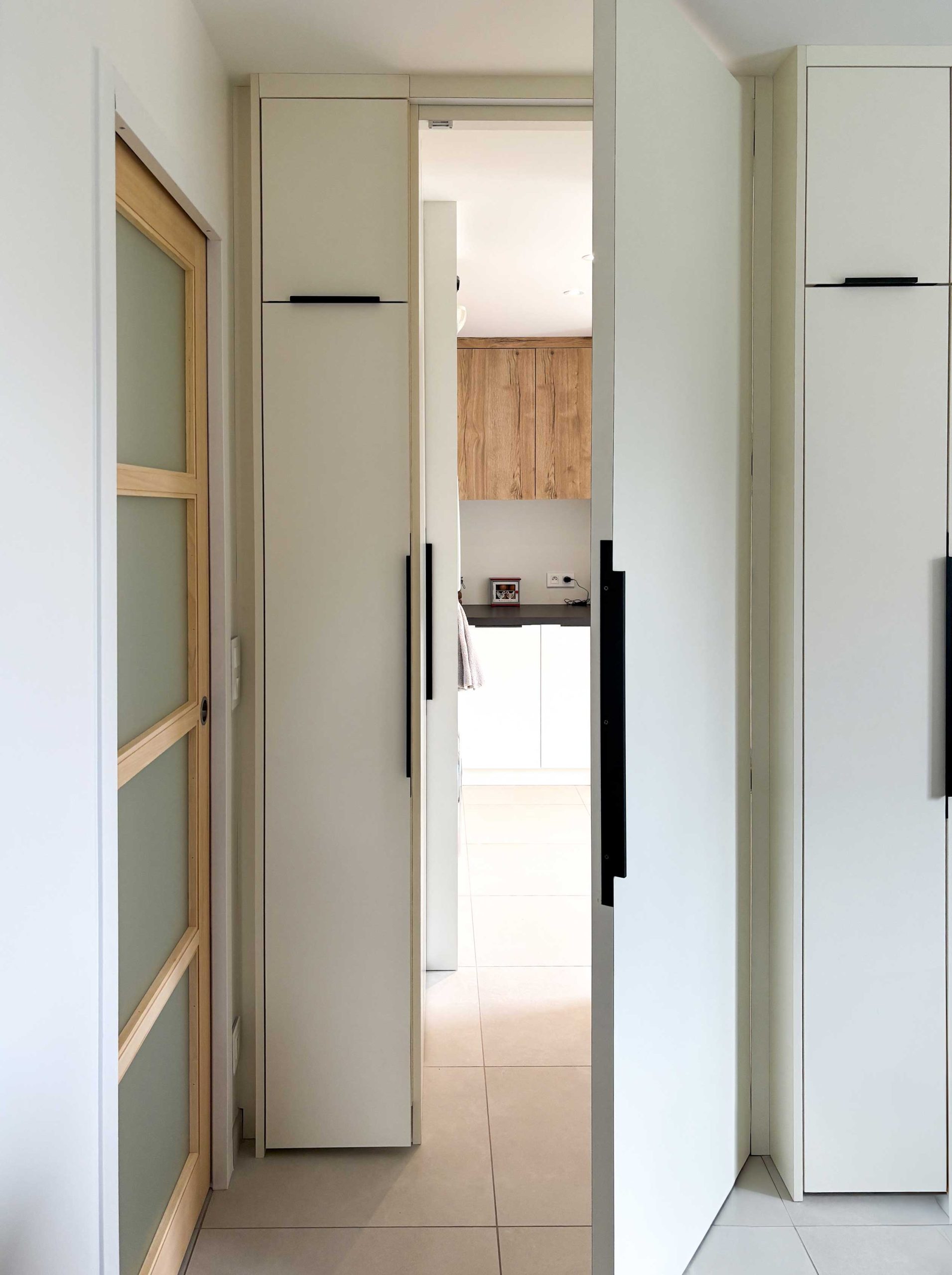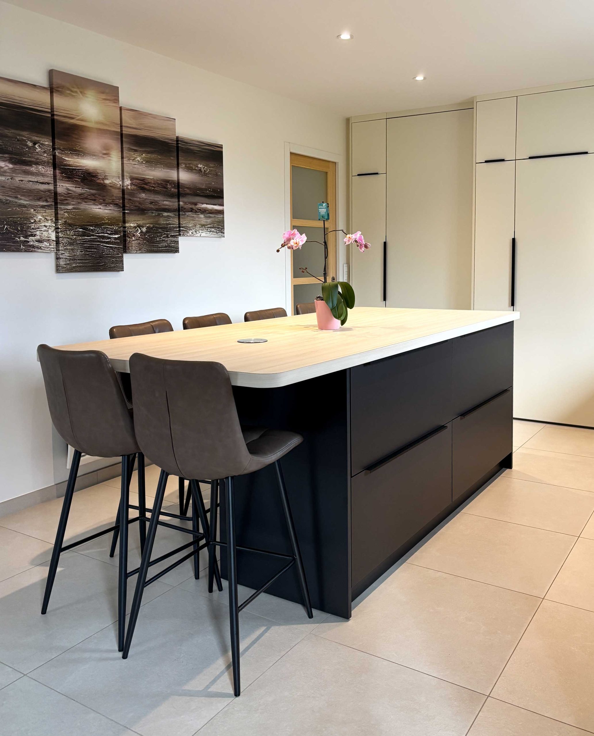 Découvrez cette cuisine de notre gamme standard, entièrement équipée d’une hotte escamotable et de nombreux rangements.